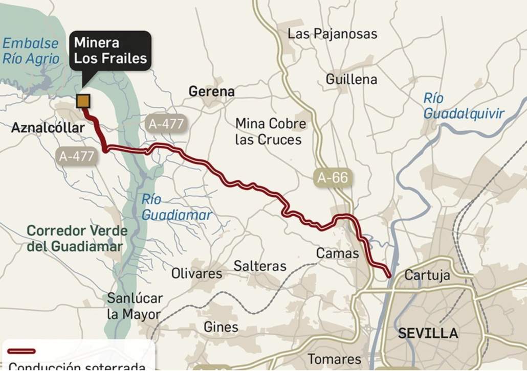 Conducción soterrada prevista para cruzar el Aljarafe norte