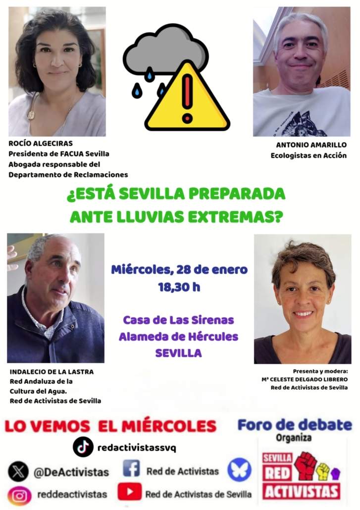 28ene6:30 pm8:30 pm¿Está Sevilla preparada ante lluvias extremas? Debate