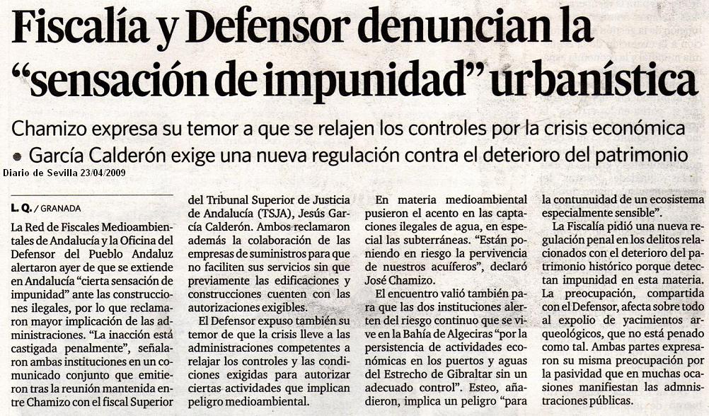 Fiscales y Defensor alertan de la sensación de impunidad ante las construcciones ilegales.