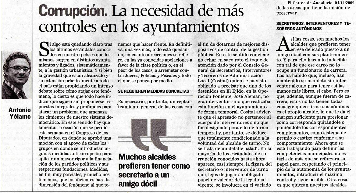 Varios libros e informes han analizado, en los últimos años, la corrupción urbanística en nuestro país. A la derecha de esta líneas puedes ver algunos de esos recientes informes, efectuados por instituciones nada sospechosas de querer crear falsas alarmas. Todas coinciden en diagnosticar la enorme extensión del problema, la grave afección al sistema democrático y en la necesidad urgente de introducir reformas, e incluso ofrecen un amplio catálogo de reformas necesarias. En referencia a los controles municipales y los Secrerarios e Interventores municipales, es especialmente ilustrativo el apartado sobre el mismo contenido en el informe de la Fundación Alternativas.