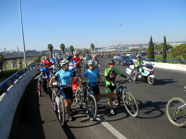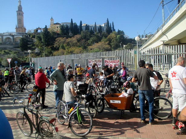 Se ha celebrado loa marcha Ciclista por la pasarela ciclista-peatonal sobre la SE-30, en Tablada, con la asistencia de unos 500 ciclistas de todas la edades.