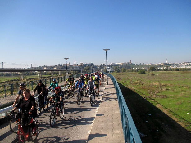 MARCHA CICLISTA 15 NOVIEMBRE 2015 por la pasarela ciclista-peatonal sobre la SE-30, en Tablada.