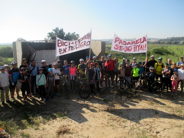 2015 10 23 Pasarela SE-30: MARCHA CICLISTA REIVINDICATIVA. La construcción está paralizada desde hace meses. PRESENTADA LA PASARELA PEATONAL Y CICLISTA ENTRE SAN JUAN Y SEVILLA.